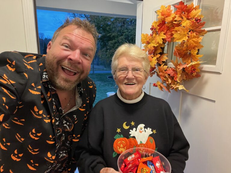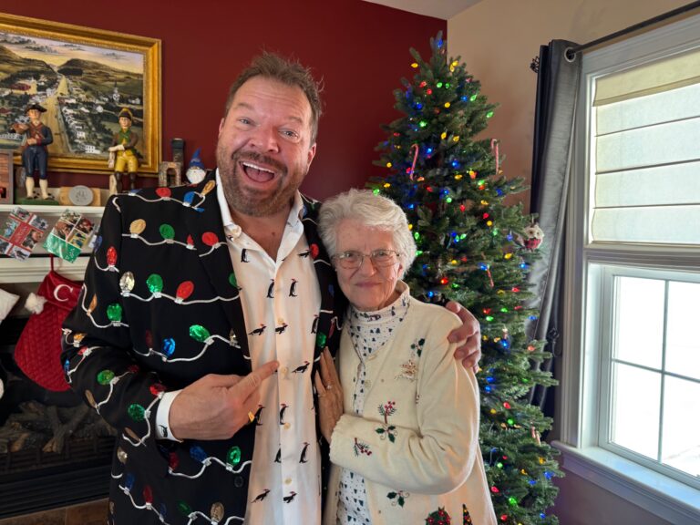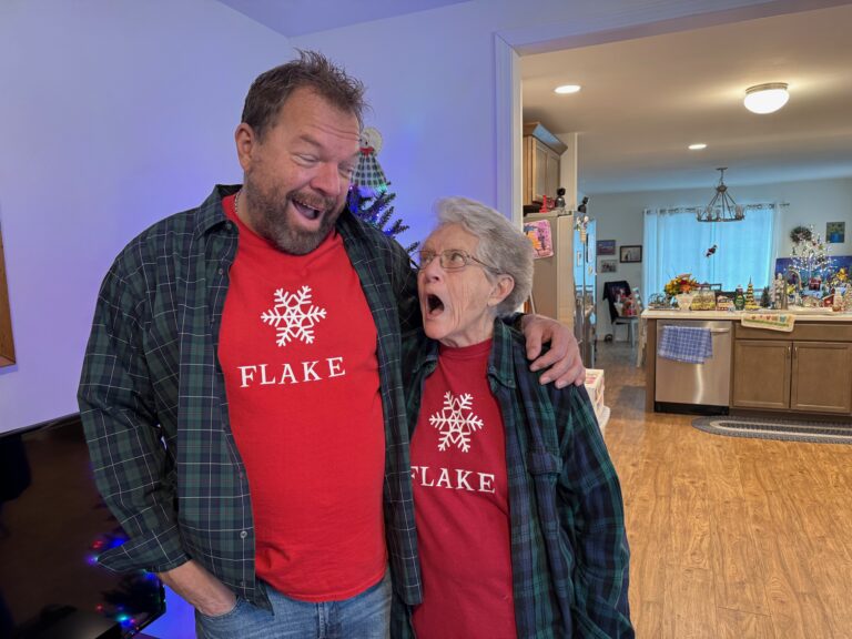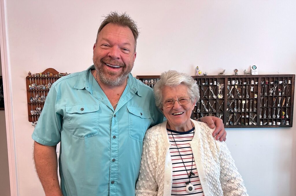 Mom and I standing in front of a part of her spoon collection. The family and I have brought her spoons from all over. With all of my travel, I’ve given her over 100. Sometimes she just looks them over.