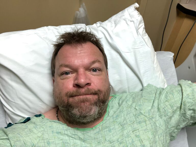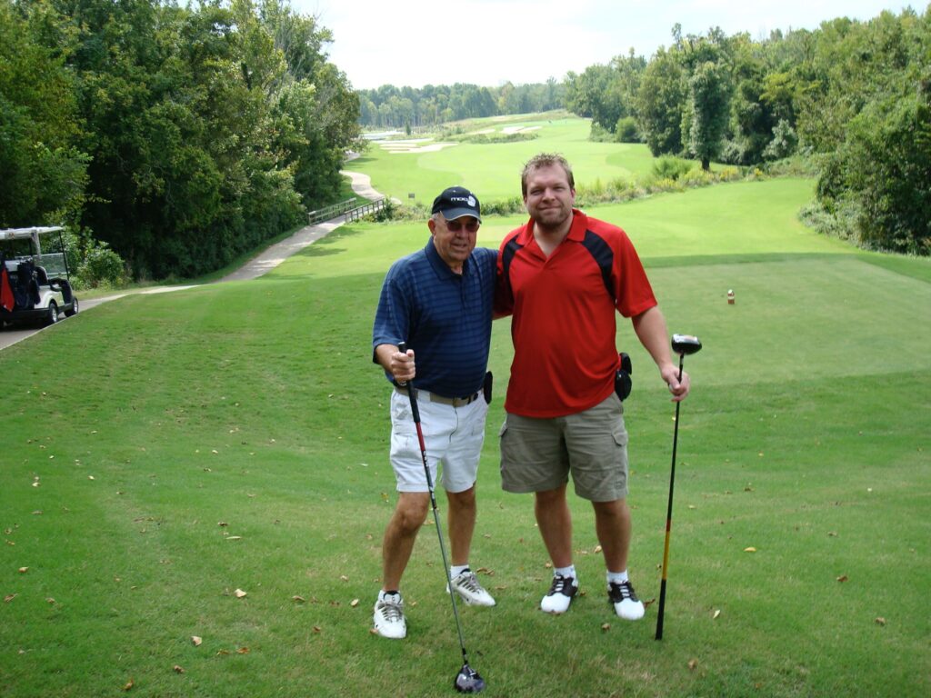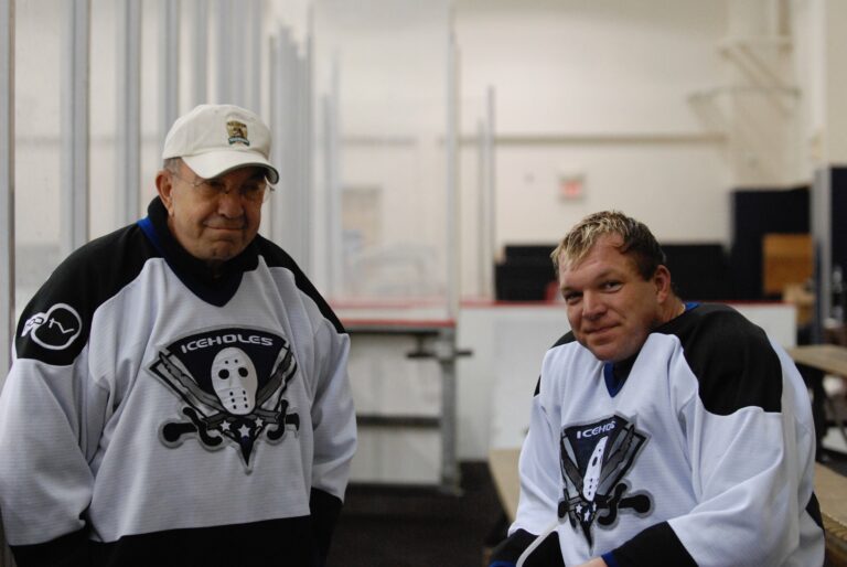 Dad visiting me at an Iceholes game. Of course, he needed a jersey.