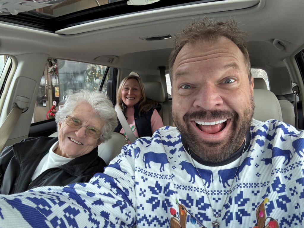 Here we are headed to her favorite coffee shop with her helper, Kelly. Mom has an amazing team of ladies who look after her.