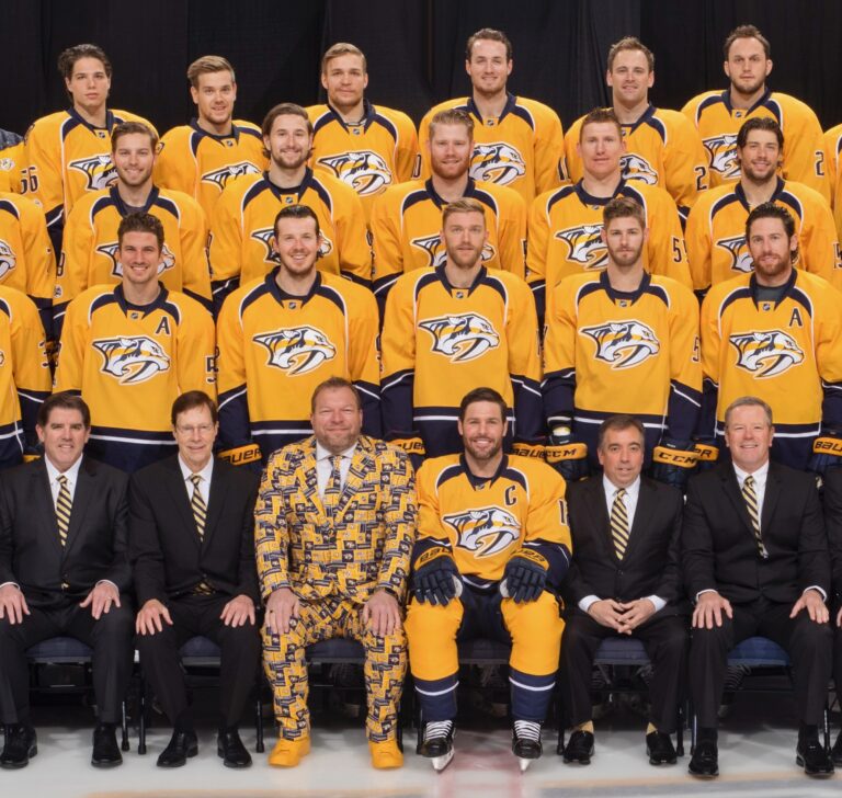I have an insane amount of crazy suits. This one, smothered in Predators graphics, was custom-made by my amazing friend Patti Talbot. I like dressing a bit wild. I have over 50 wild suits for Christmas alone. Why not? It’s fun, and it makes people smile.