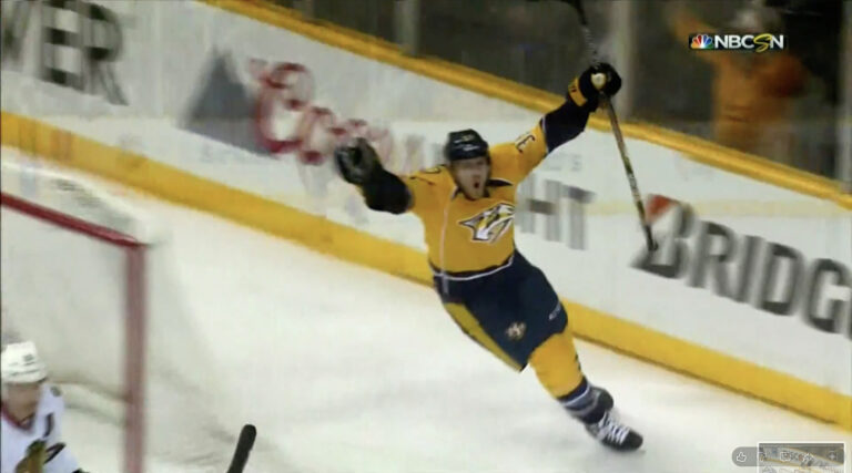 Colin just after scoring a goal. I actually took this pic. Photography is a big hobby of mine, occasionally the Predators allow me to be the official photographer for their games.